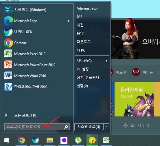 아래 프로그램 및 파일검색 위치에